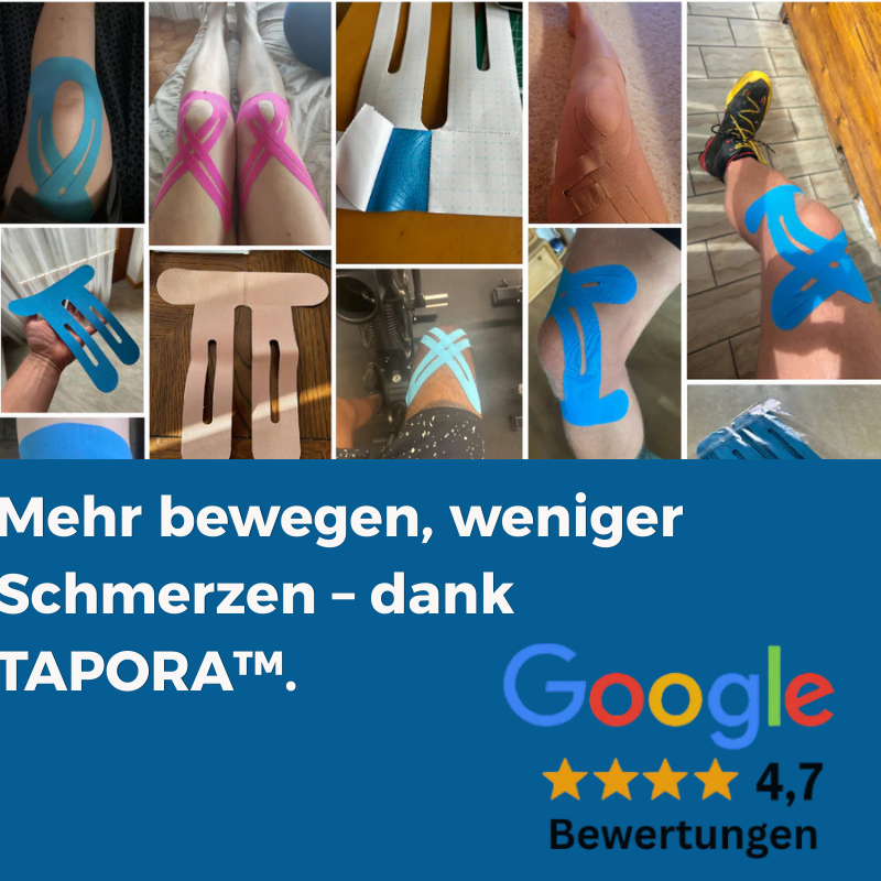Schon seit Jahren vertrauen Therapeuten, Sportmediziner und Reha-Profis auf Kinesiologie-Tapes. Mit TAPORA™ kannst du diese Unterstützung jetzt ganz einfach zu Hause und ohne Vorkenntnisse nutzen!
